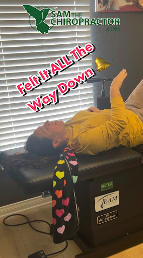 Sam is amazing, hes definitely not shy about informing you with any questions that you might have. He Takes time and doesnt just rush through it you could tell he loves what hes doing and he knows exactly what hes doing , A professional in the highest regard, I went in with neck and shoulder pain also with a right ankle that has been bothering me for years .With one visit to Sam The Chiropractor I feel 90% better surprisingly because that was just my first visit ,the office is really clean and welcoming I would definitely recommend this to anybody, Thanks Sam