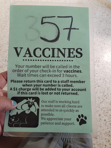 Holy Moly this facility is the worst I have ever been too. The front office staff for the Vet are rude, unprofessional, snappy and aggressive. The pets have more manners than they do.They do have low cost pet services, but that does not give them the right to treat people like cramp! I was there for 5 hrs with my pet, no water no food. But it is how the office staff works and the attitude that is the worst experience. The day I was there I lost count of the mistakes they keeped making with people and their pets and that was scary. If you must go there take a lunch and food/water for your pet it is a horribly long wait, and that is hard on a sick pet. Please speak up if they are rude to you. The front staff has no compassion or love for pets because they are so busy, and they only have one Vet for tons and tons of people. These people work on donations and voluntary I hear but they still get a big fat 0!