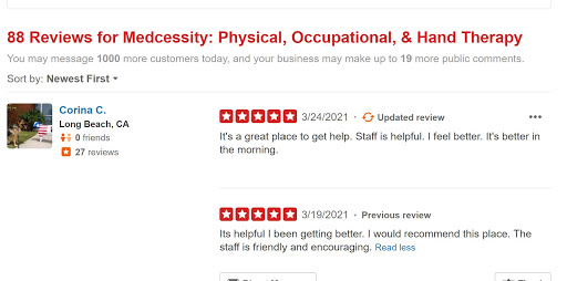 You will find nothing but good, personable and professional physical therapists at Medcessity. After a broken distal radius and resulting surgery to repair the damage, I visited Medcessity upwards of a dozen times over two months. The therapy they provided put me on the fast track to recovery and I am completely satisfied. If youre looking for great local service, look no further. Thanks Manny!