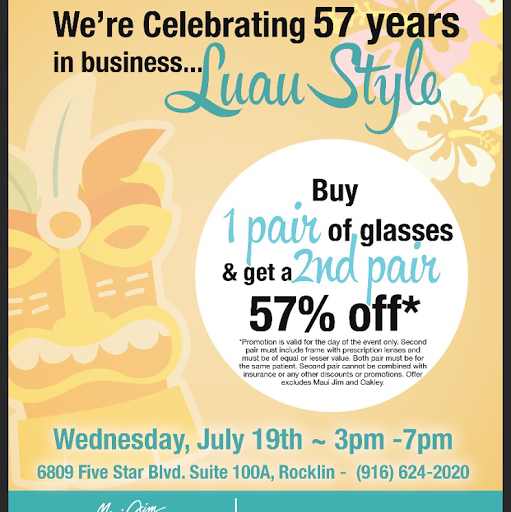 I felt that I staff was very helpful and polite. They greeted us (my husband and I) when we entered and were eager to assist us. The eye exam itself was very thorough and the retinal exam was whole lot easier then previously. It was like have "space age" technology in this little old Rocklin. I enjoyed meeting the new Doctor (sorry I am bad with names so I dont remember her name) but she was very personable and easy to speak with. All in all I think they all "rock".