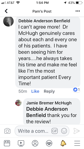 Ive been going to Dr.McHugh for years hes the best very comfortable and knowledgable! Would refer anyone.