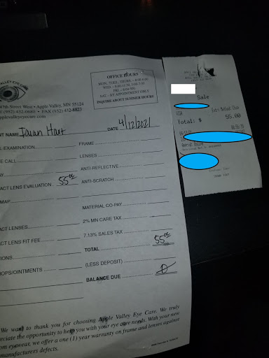 Apple Valley Eye Care has the best staff and Optometrists!! Great eye ware selection and a wonderful staff to help you choose the right glasses for you!