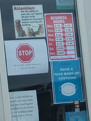 Go to maplewood vet in pelican rapids. Showed up 8 minutes late to the appt coming from out of town, and got turned away for 2 shots and a check up for our dog. Will not waste my time going here again.