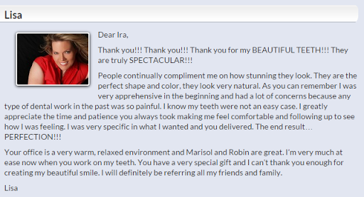 I have visited numerous dentists ever since I was a child due to many extensive dental issues. Needless to say my anxiety over dental appointments was at an all time high. All of that changed once I started going to the Dental Design Center. Dr. Ira Handschuh and his staff are professional and courteous to everyone that steps in their doors. They provide as much time as you need to discuss your dental issues and all of the options available to you. I felt comfortable working with him and explaining my goals and concerns with treatments. Most importantly, Dr. Handschuh really listened to my concerns and took them into consideration. I am so thrilled with the way my treatment turned out. I could not be happier with my smile! I highly recommend anyone looking for an amazing dentist to head over to the Dental Design Center. I cannot imagine going anywhere else.