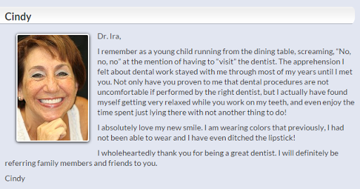 I was so happy when a co-worker referred me to Ira Handschuh, after my dentist retired. I was in a period of challenge with my teeth and wanted to find a dentist that would make improving them a positive experience. On my first visit, I discovered that I had found a dentist, which I actually enjoyed going to! I had a very good dentist in the past, but through my experiences with Dr. Handschuh, I realized he takes dentistry to a new level. I dont think Id ever experienced that dental work could be such a proactive, conscious process of working toward health goals. When I arrived for my first cleaning, I was surprised to learn that Dr. Handschuh does that himself, as a way of gaining more knowledge about his patients teeth. Every procedure Ive experienced with him has had the quality of custom care and focused ease that made the process relaxed and positive. His guidance in my decisions for my teeth has been so helpful, I feel very fortunate to have found him. Thank you, Dr. Handschuh!