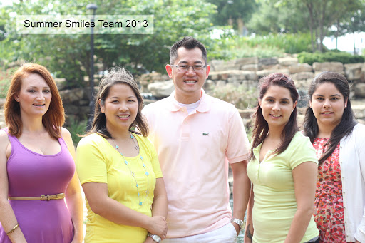 For the past year Ive been going to Summer Smiles and I cannot give enough praise for the staff here. They always have a smile and make me feel so comfortable every time I visit. I moved to Texas a year ago, and had to have extensive work done on my teeth, found Summer Smiles thru the awesome Yelp reviews and made an appt. I have visits every 3 months and the staff are just great people to be around! They are very professional, yet they all just have that way to make me feel calm and comfortable before any procedures. I HIGHLY recommend them. A special thanks to Tracey, my personal hygienist, shes the bomb! Brittany at the front desk, a finance wizard, and Dr. Hsia, hes done WONDERS for my poor teeth!