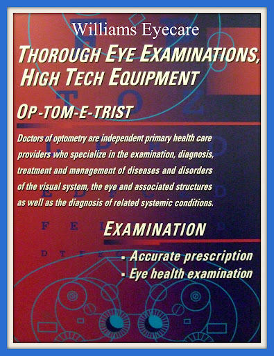 I wouldnt go anywhere else for an eye exam. If you dont already have a place to go, please try Williams Eye Care. You wont be disappointed.