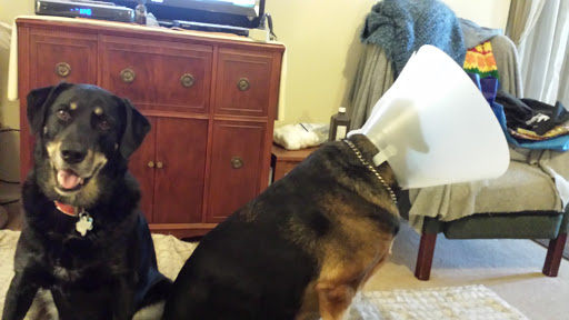 Friendly people working there. Unfortunately waiting 45 minutes in a room with 3 dogs was not fun. 45 min beyond appointment time with one dog shaking the entire time. Lots of conversations going on in back room while we were waiting. We were ready to leave. My dogs are treated well, but this last visit for shots, exams, and one med was quite expensive. Moral: Retired people cant afford to take all three dogs to the vet at once. I will know better next time.