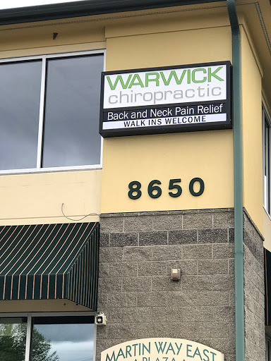Review from Sharon and Dave: (1) Dr. Warwick is a caring chiropractor. He listens to your problems, informs you about his procedures and then performs them with ease. His "gently but firmly" approach works well with me. He will give you advise on personal stretches and answer any questions about your concerns. I highly recommend him! (Sharon - Lacey, WA) (2) Dr. Warwick is always concerned with my health and well being. He listens with attention to details regarding my current discomfort and pain and addresses each area diligently. He also provided education regarding trigger points and regional functionality of various skeletal and nerve related areas of the body. I would recomment Dr. Warwich to my relatives and friends. (Dave - Lacey, WA)